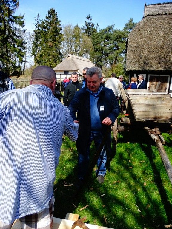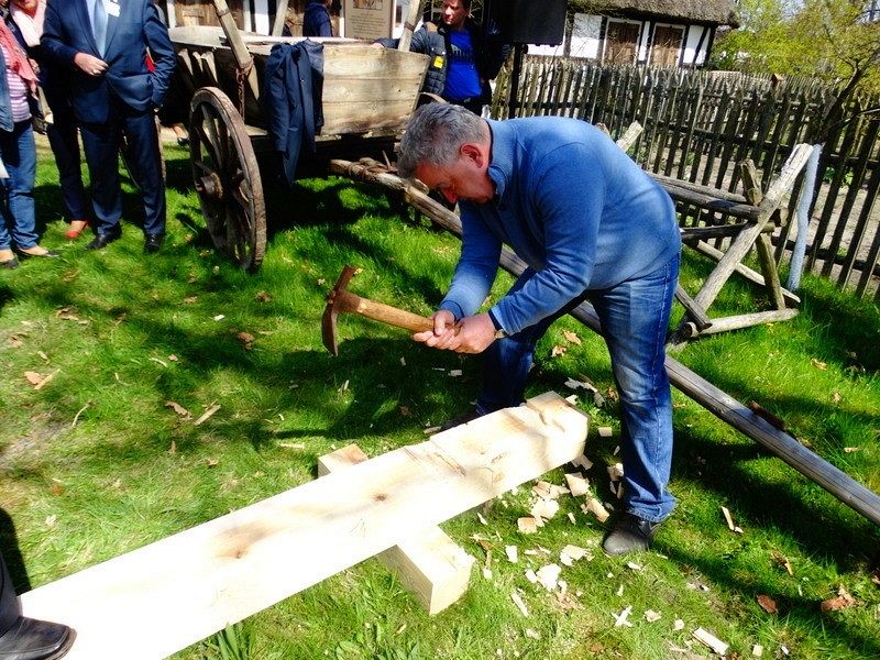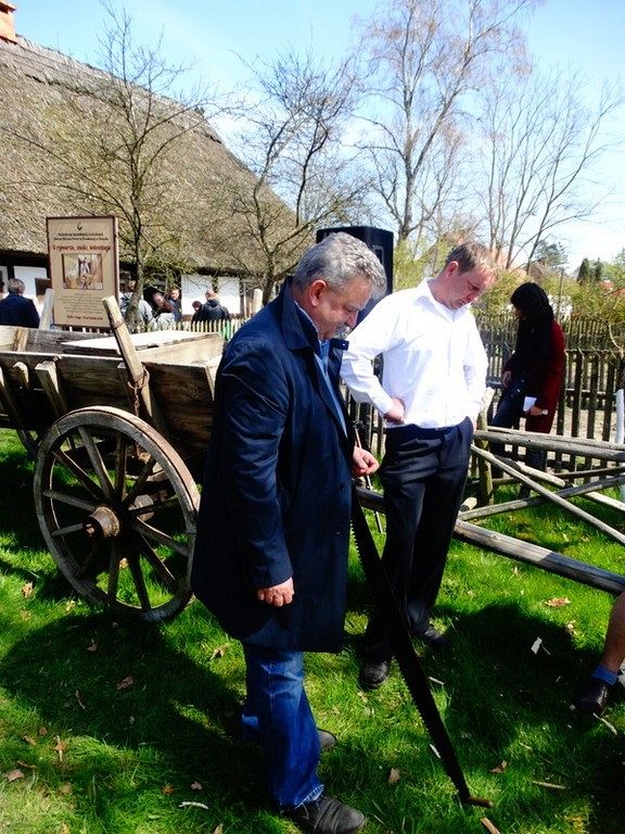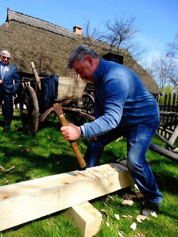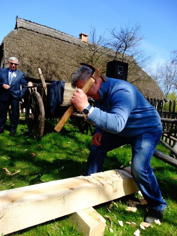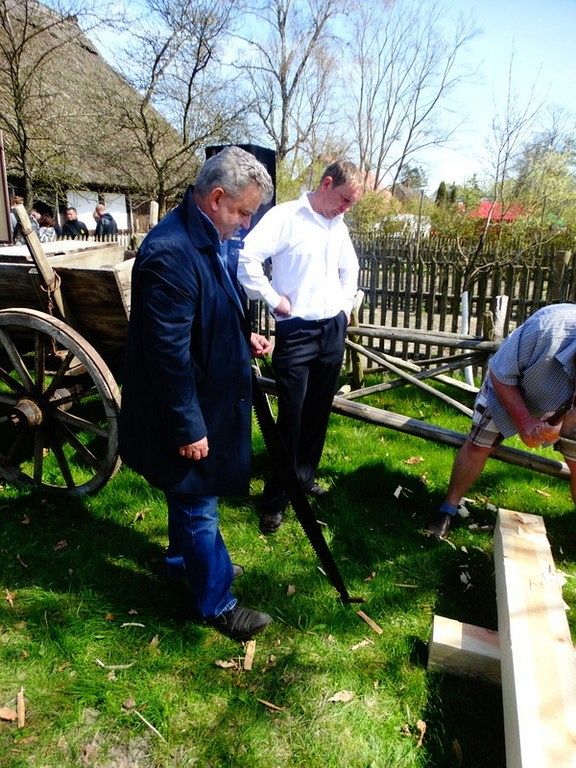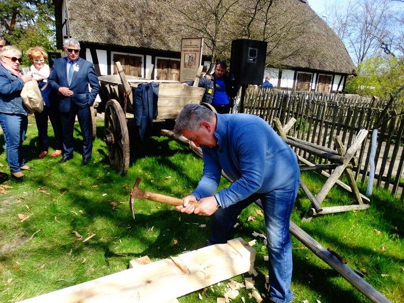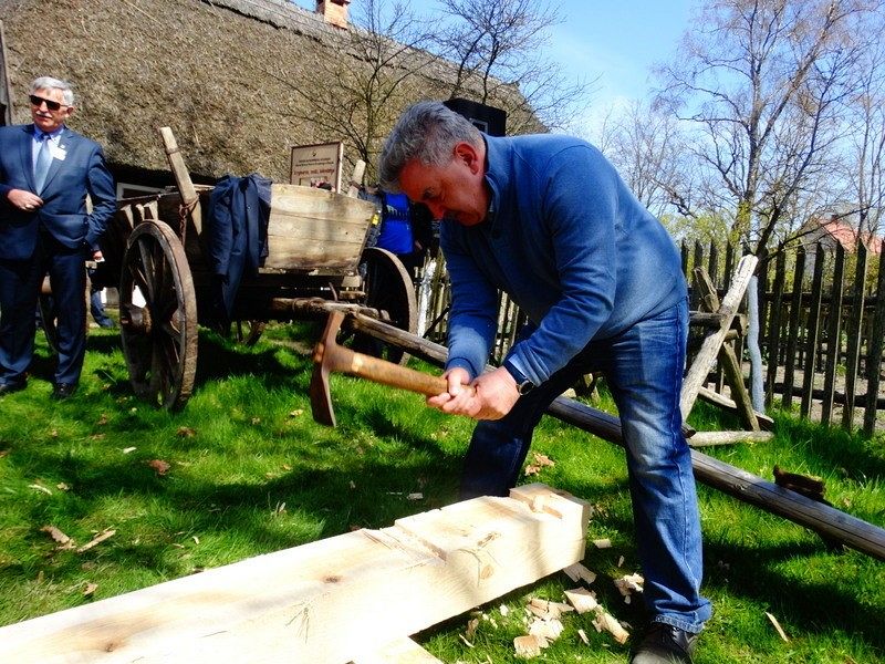 Podczas Czarnego Wesela, które odbyło się w sobotę w Klukach – Senator Kazimierz Kleina - uczestniczył w oficjalnym otwarciu Wystawy: U rymarza, cieśli, kołodzieja. Następnie zmierzył się z pokazowym ciesielstwem, które nawiązywało do zamysłu stworzenia tego całego przedsięwzięcia. Po wykonanych pracach fizycznych nastąpił także moment na pamiątkowe zdjęcia w towarzystwie dzieci, młodzieży i dorosłych z ZPiT – Ziemia Lęborska. Tradycja zakorzeniona przy chłopskich chatach nadawała nutce regionalizmu nowego znaczenia, w którym język wyuczony w szkołach, styl ubierania się , jak i występy: śpiewy i tańce - stały się sensem dziedziczenia elementów kaszubskiej kultury.