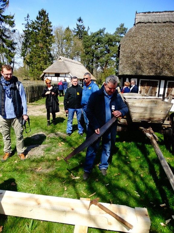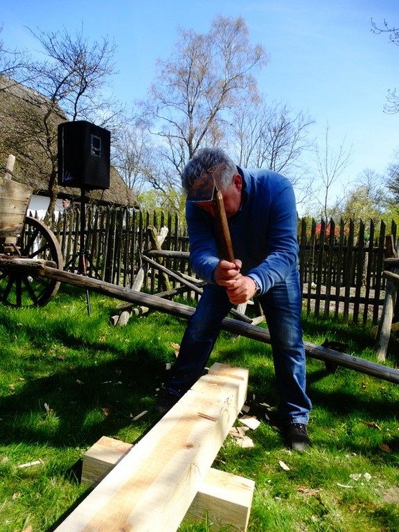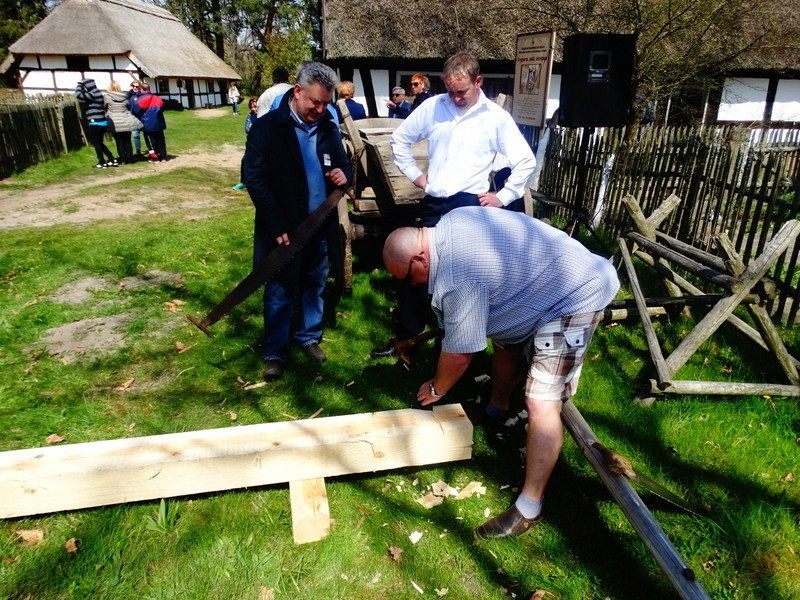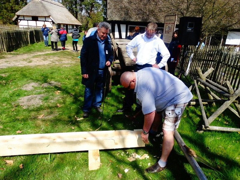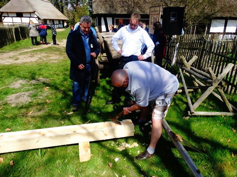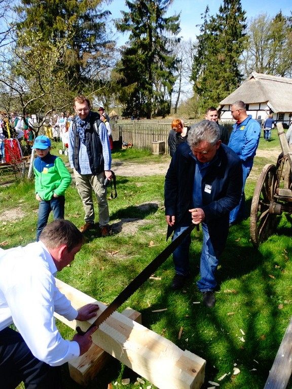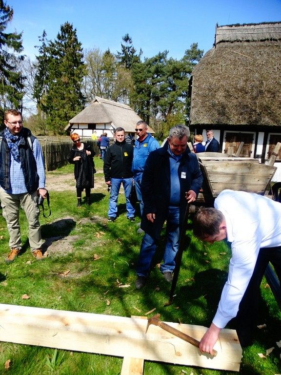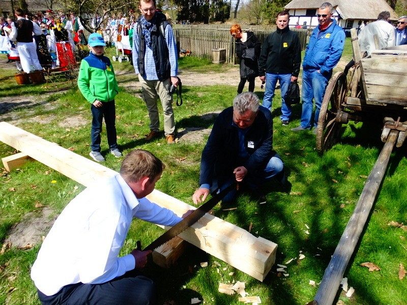 Podczas Czarnego Wesela, które odbyło się w sobotę w Klukach – Senator Kazimierz Kleina - uczestniczył w oficjalnym otwarciu Wystawy: U rymarza, cieśli, kołodzieja. Następnie zmierzył się z pokazowym ciesielstwem, które nawiązywało do zamysłu stworzenia tego całego przedsięwzięcia. Po wykonanych pracach fizycznych nastąpił także moment na pamiątkowe zdjęcia w towarzystwie dzieci, młodzieży i dorosłych z ZPiT – Ziemia Lęborska. Tradycja zakorzeniona przy chłopskich chatach nadawała nutce regionalizmu nowego znaczenia, w którym język wyuczony w szkołach, styl ubierania się , jak i występy: śpiewy i tańce - stały się sensem dziedziczenia elementów kaszubskiej kultury.