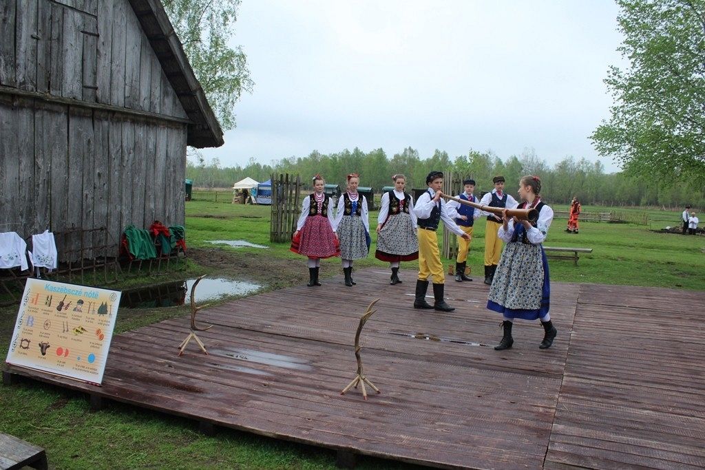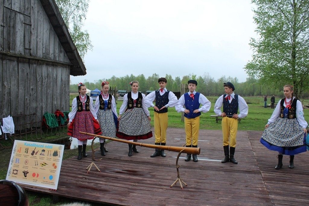 Deszczowo - słoneczna pogoda zaprasza członków ZPiT ZL do tańca. Stare nazwy kaszubskie przybliża wszystkim – kierownik Zespołu – Pani Renata Hopa. Za nią podążają muzykanci, tancerze i śpiewacy. Tłum turystów włącza się do wspólnej zabawy, bo….