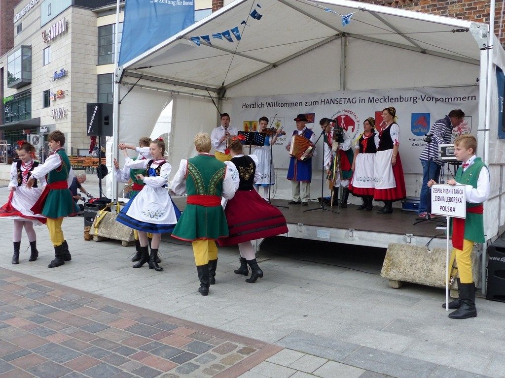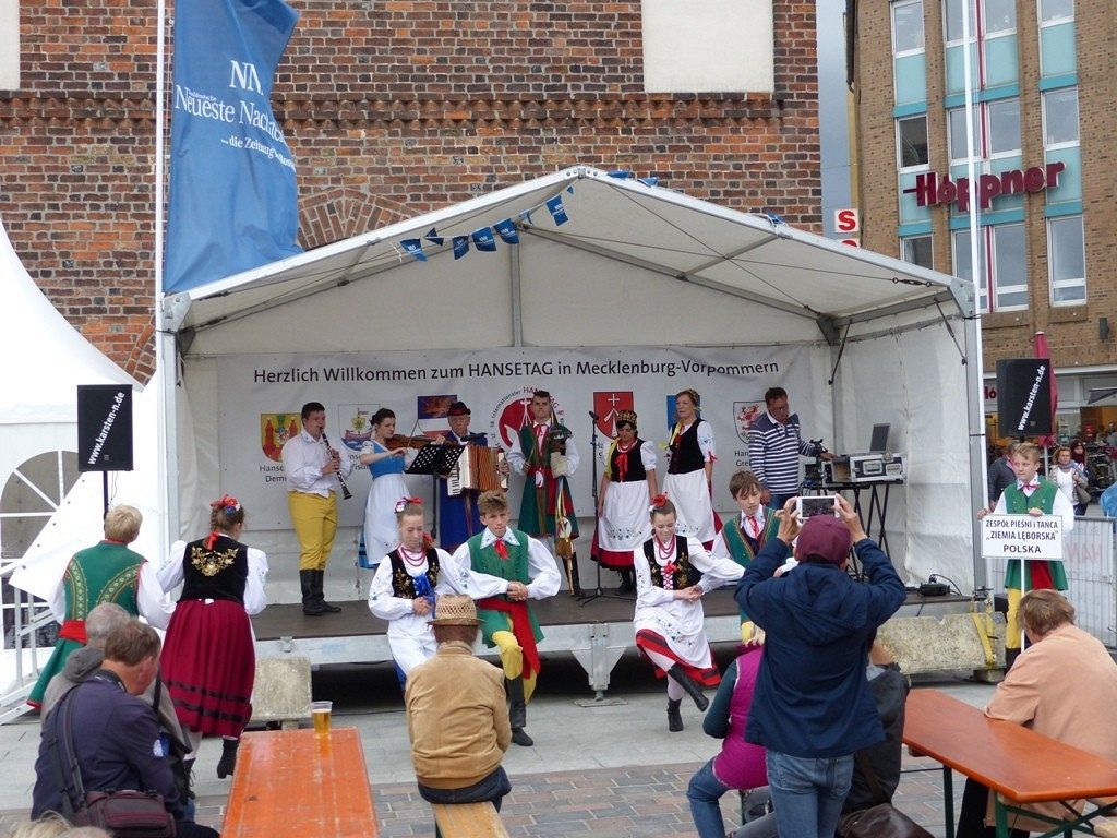 Zespół Pieśni i Tańca "Ziemia Lęborska" reprezentuje nasze miasto na 38. Międzynarodowym Zjeździe Hanzy w Rostocku (Niemcy). Regionalny zespół koncertuje na scenach w różnych częściach miasta oraz spontanicznie na ulicy wciągając do zabawy turystów z wielu stron Europy i świata. Tak było dzisiaj w portowym Rostocku. Brawo!