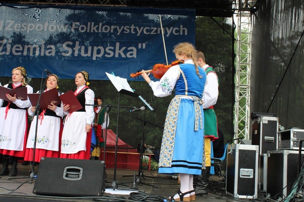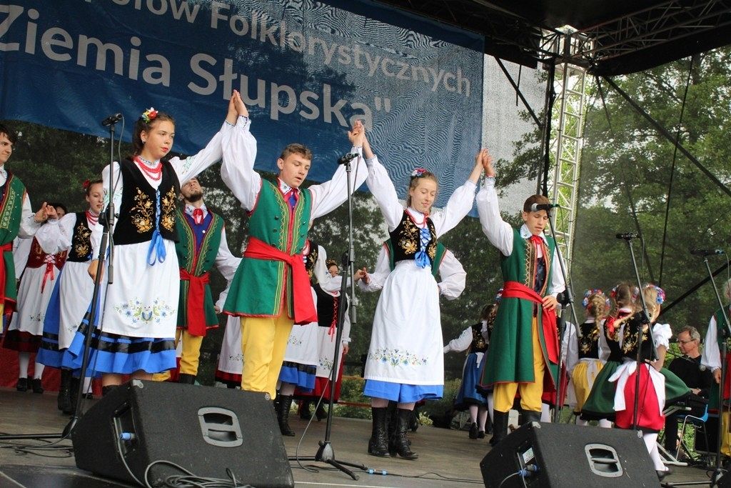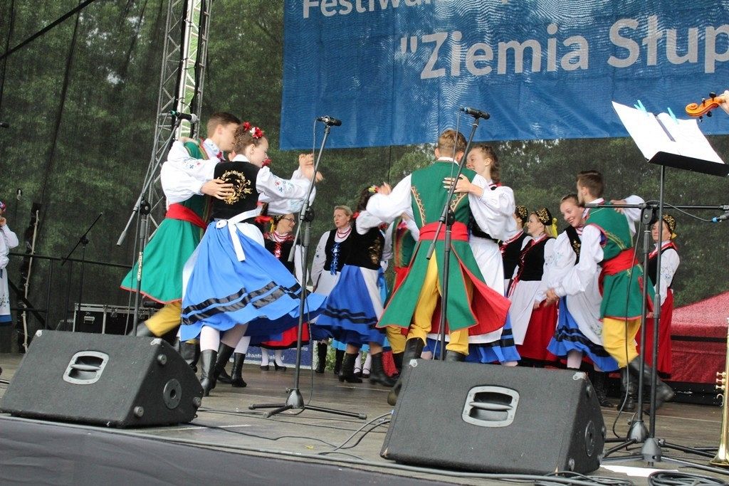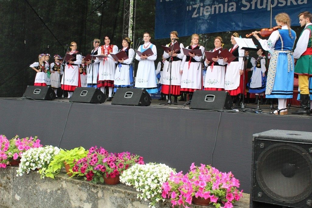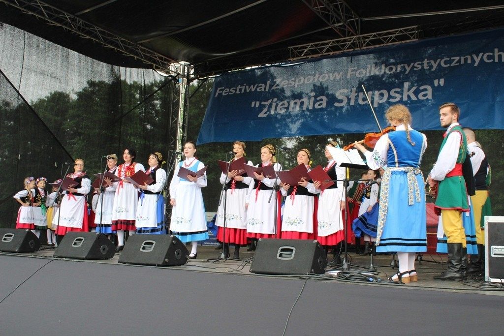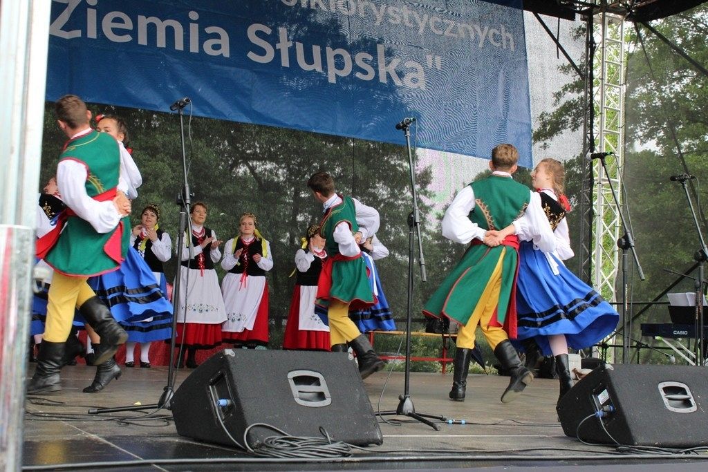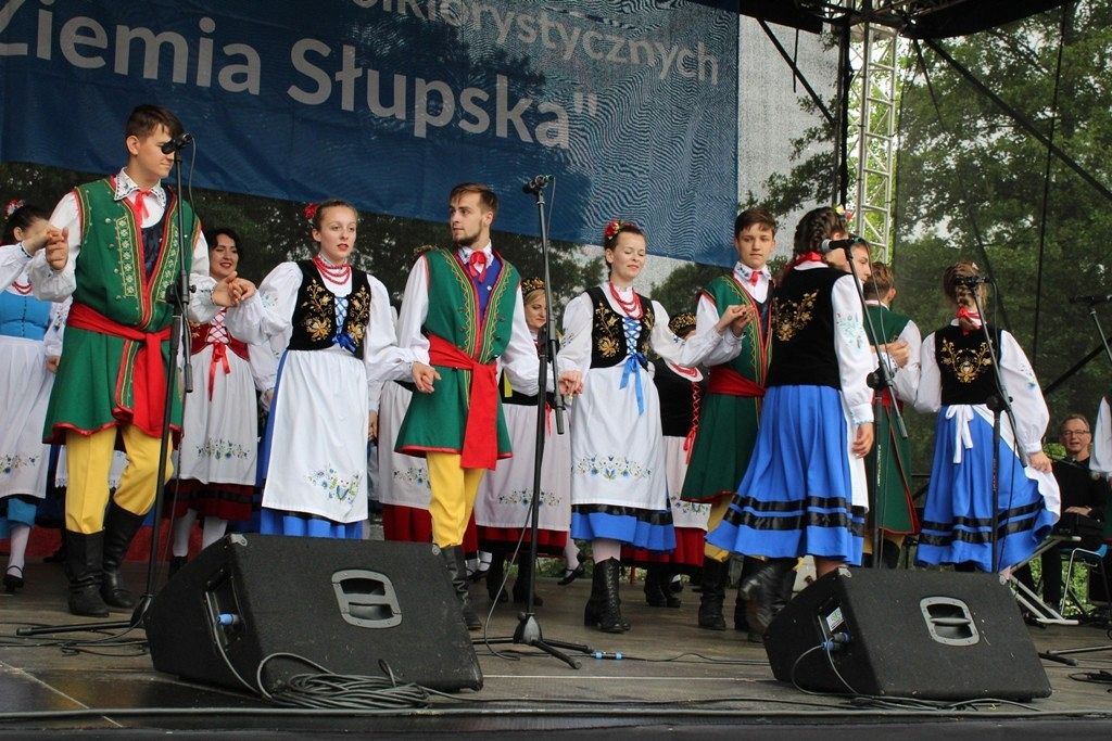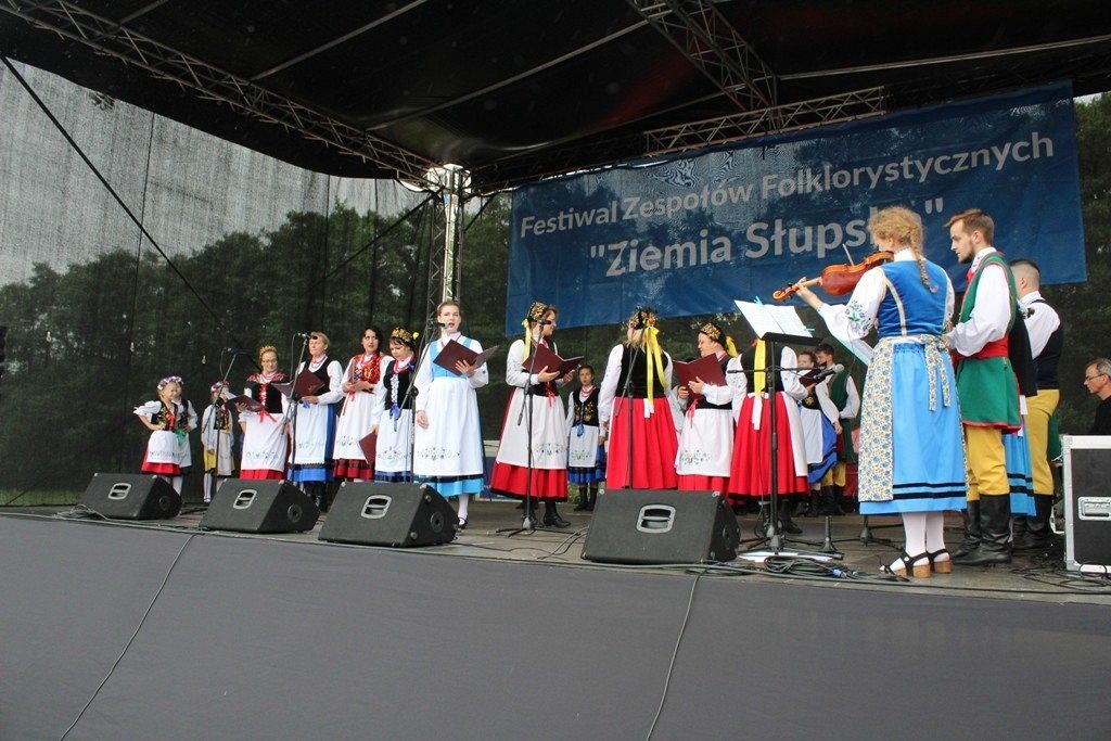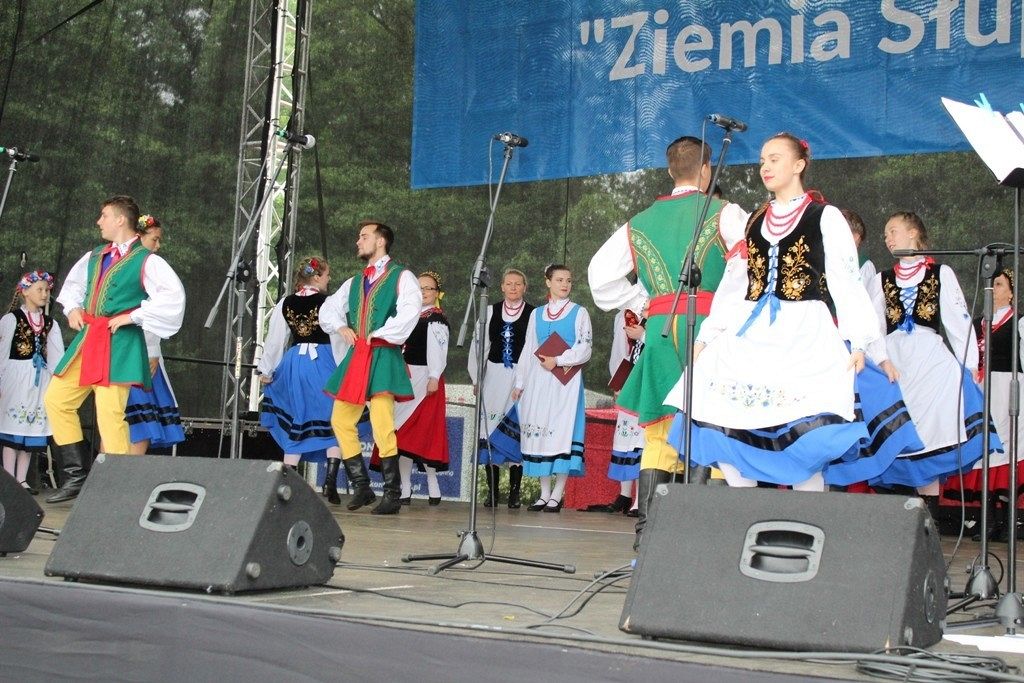 Podczas III Festiwalu Zespołów Folklorystycznych „Ziemia Słupska” 2019 - 16 czerwca odwiedzamy, to miasto i uczestniczymy w mszy św. w kościele Mariackim, a następnie przemieszczamy się ulicami Słupska do Parku Kultury, Sportu i Rekreacji. I chociaż lekkie opady deszczu wróżą jednak przebłyski Słońca, to kolorowy korowód składa się z przedstawicieli Zespołów, które zachwycają mieszkańców barwnymi kreacjami. Udajemy się więc za orkiestrą i władzami miasta ( Urzędu Miejskiego oraz Starostwa), a potem zaznaczamy lęborskie korzenie. Wierzymy, że kultura kaszubska – to połączenie muzyków, tancerzy i instrumentalistów – z całego regionu. Ilość gości i ich popisy na scenie wywołują brawa, a także szacunek dla odmienności kulturowej. Szeroki wachlarz repertuaru scenicznego przyciąga, bowiem fanów Rocka, Kaszub, Mazowsza, Poloneza, miłośników: