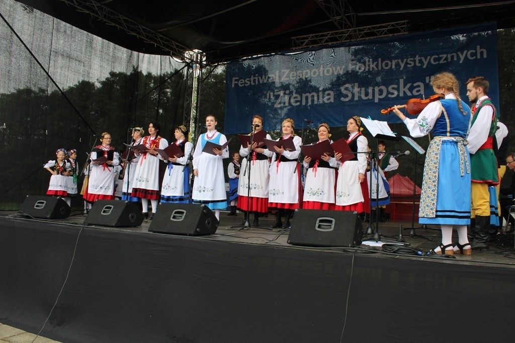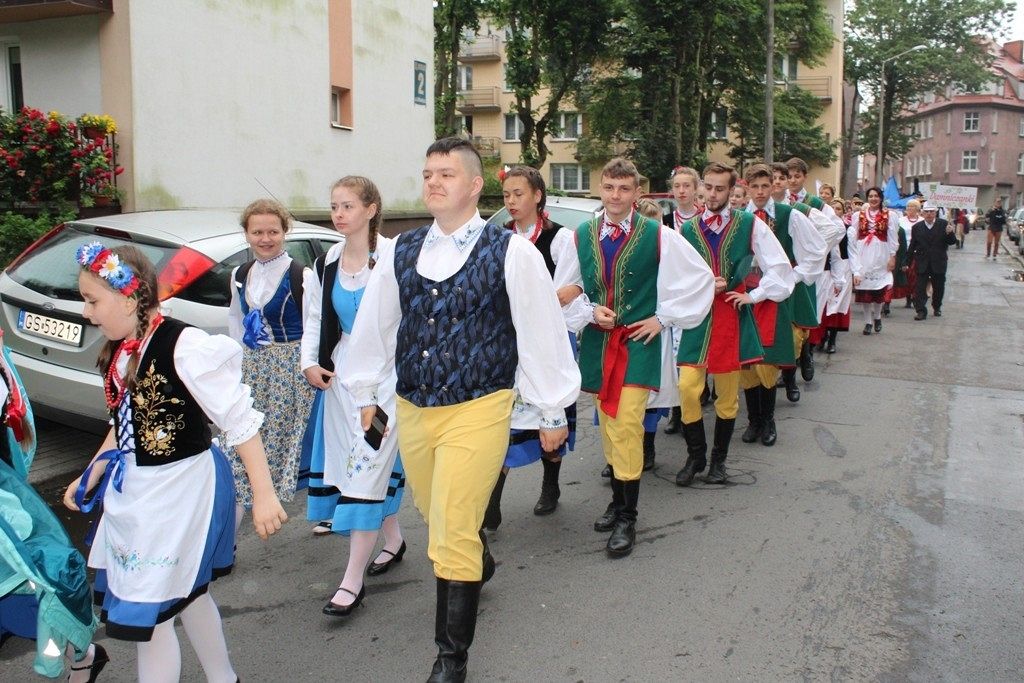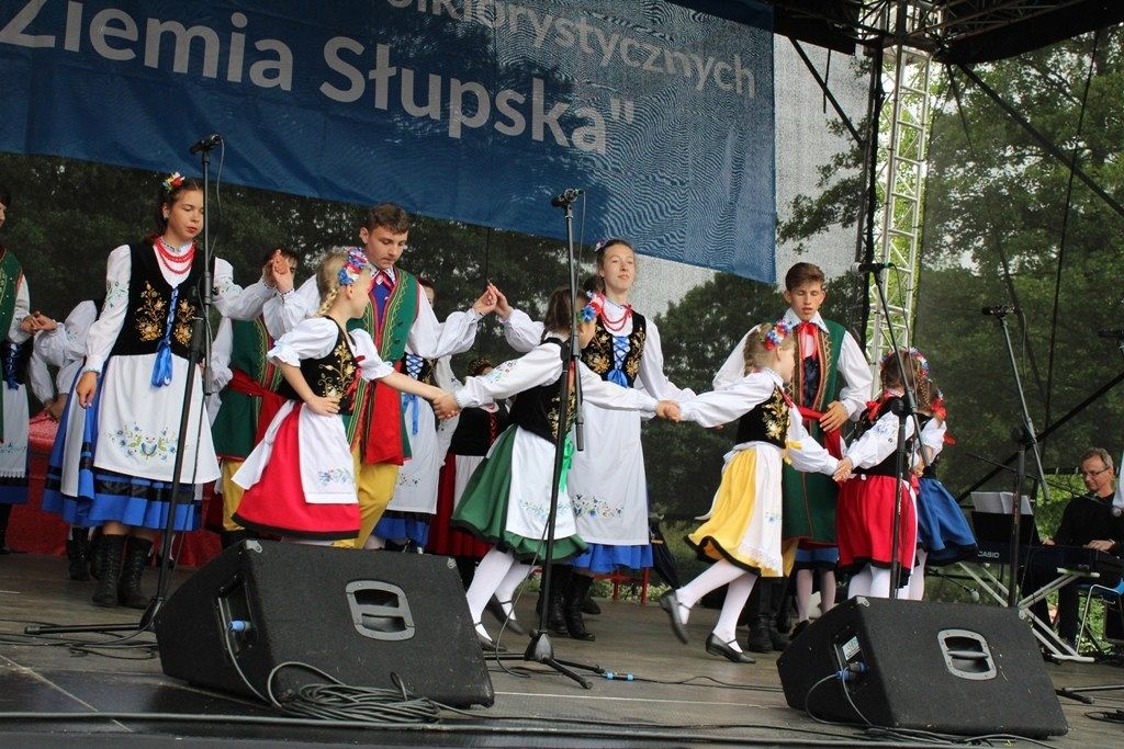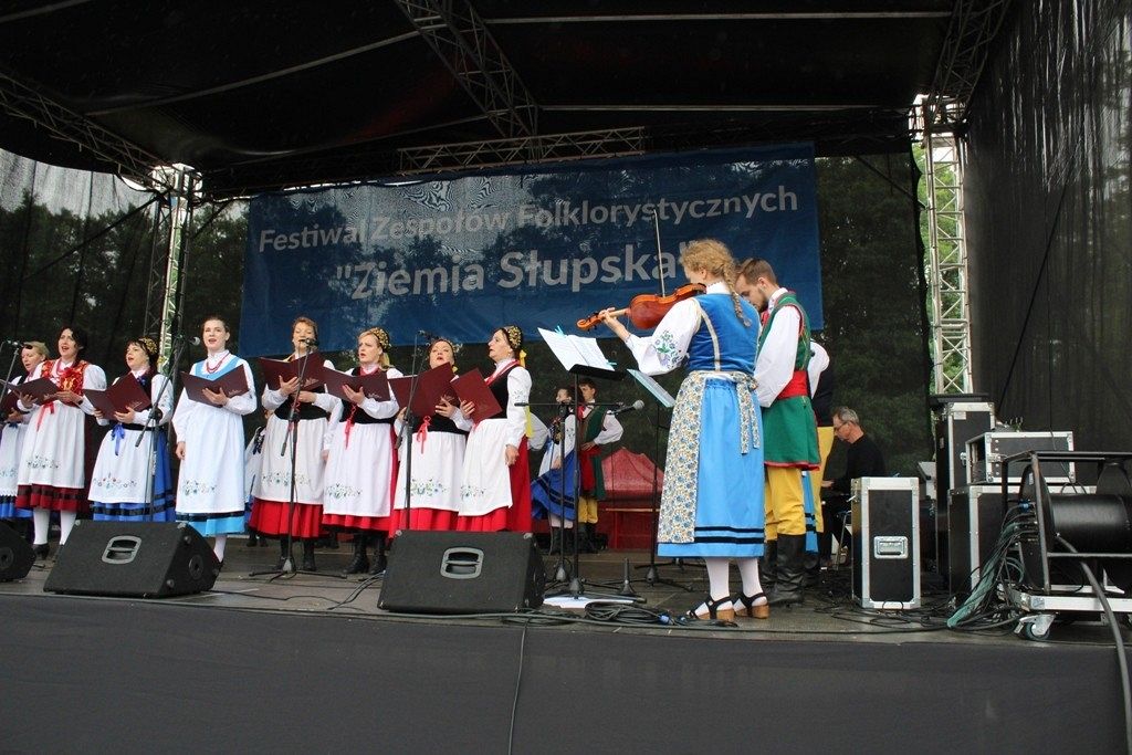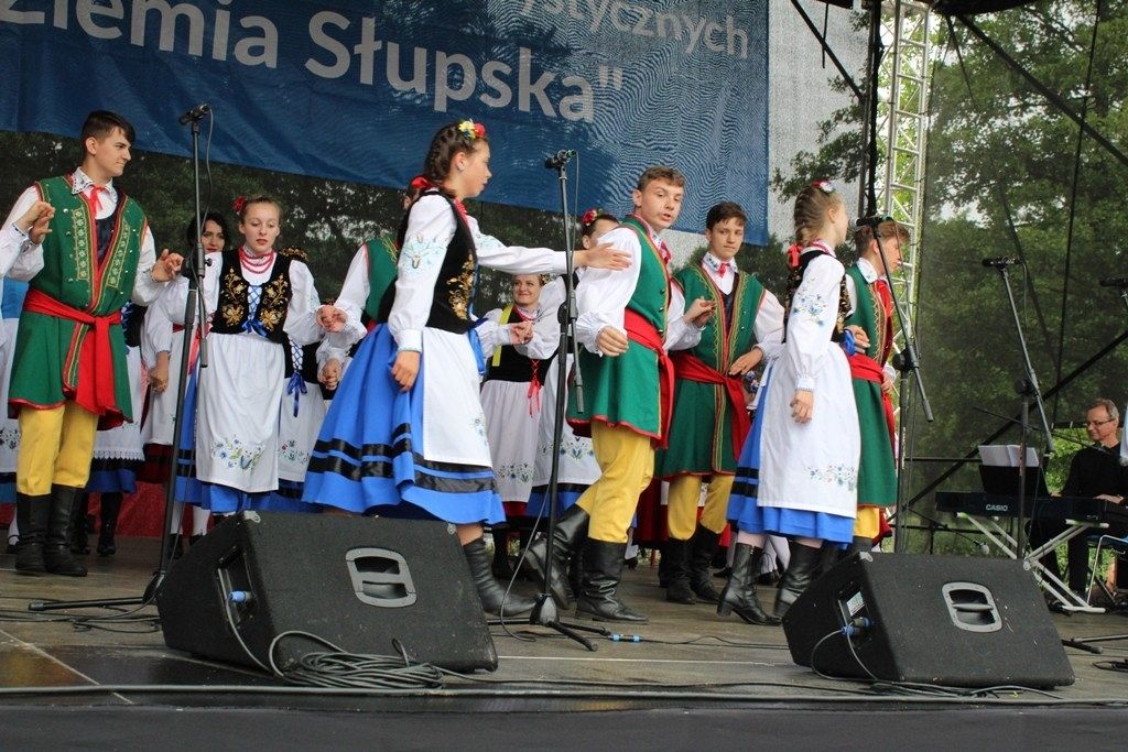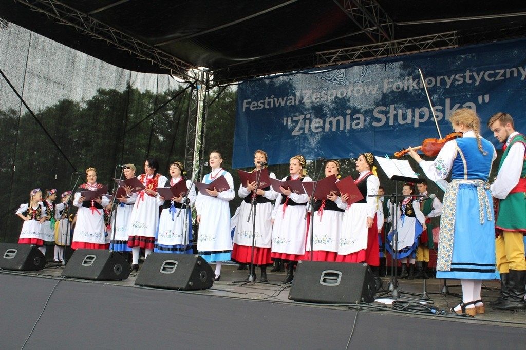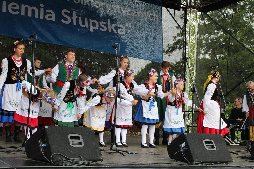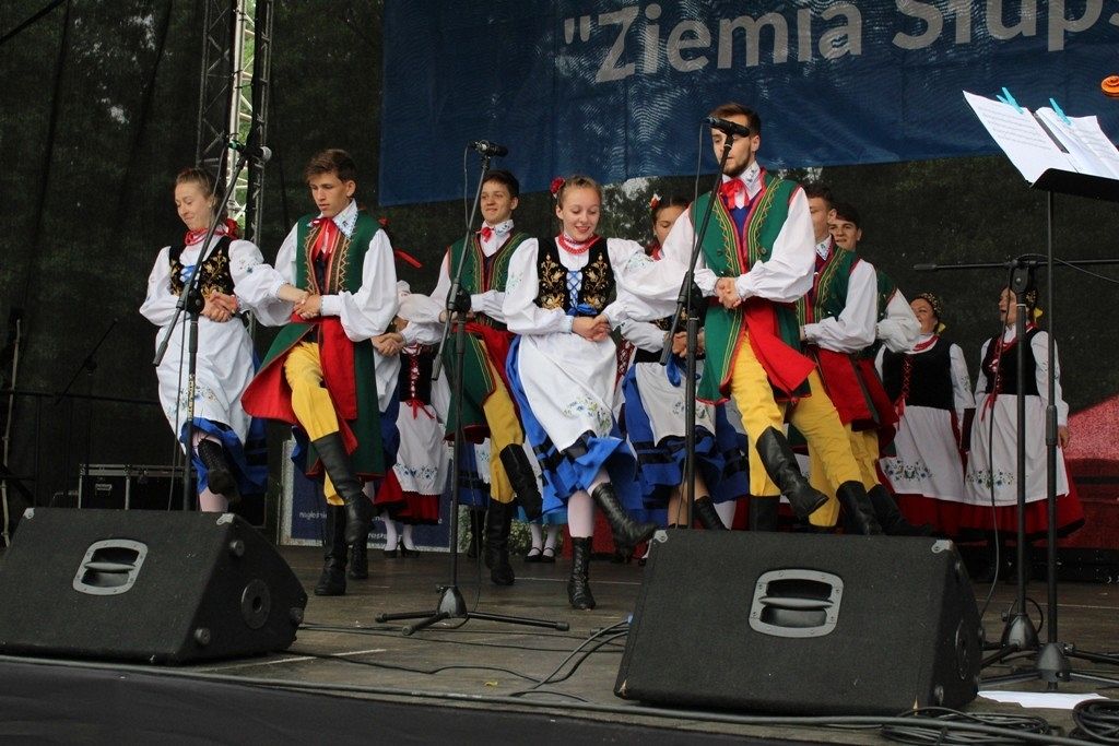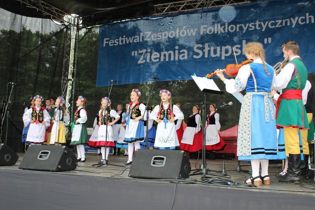 Podczas III Festiwalu Zespołów Folklorystycznych „Ziemia Słupska” 2019 - 16 czerwca odwiedzamy, to miasto i uczestniczymy w mszy św. w kościele Mariackim, a następnie przemieszczamy się ulicami Słupska do Parku Kultury, Sportu i Rekreacji. I chociaż lekkie opady deszczu wróżą jednak przebłyski Słońca, to kolorowy korowód składa się z przedstawicieli Zespołów, które zachwycają mieszkańców barwnymi kreacjami. Udajemy się więc za orkiestrą i władzami miasta ( Urzędu Miejskiego oraz Starostwa), a potem zaznaczamy lęborskie korzenie. Wierzymy, że kultura kaszubska – to połączenie muzyków, tancerzy i instrumentalistów – z całego regionu. Ilość gości i ich popisy na scenie wywołują brawa, a także szacunek dla odmienności kulturowej. Szeroki wachlarz repertuaru scenicznego przyciąga, bowiem fanów Rocka, Kaszub, Mazowsza, Poloneza, miłośników: