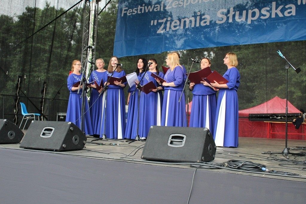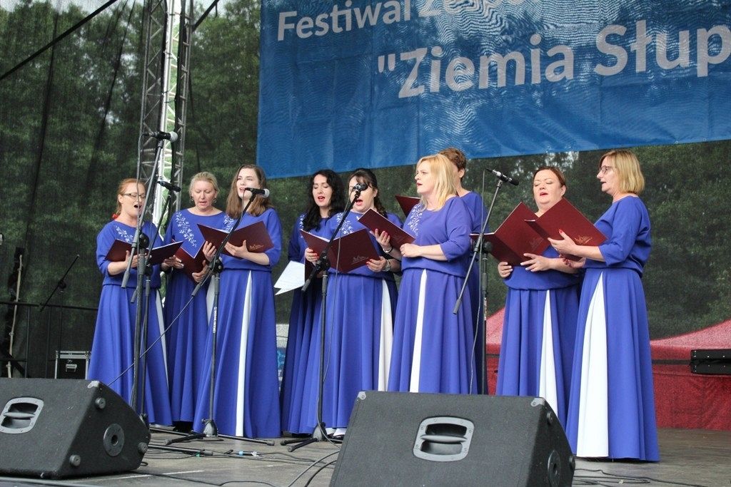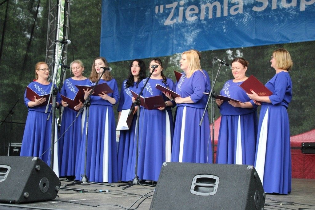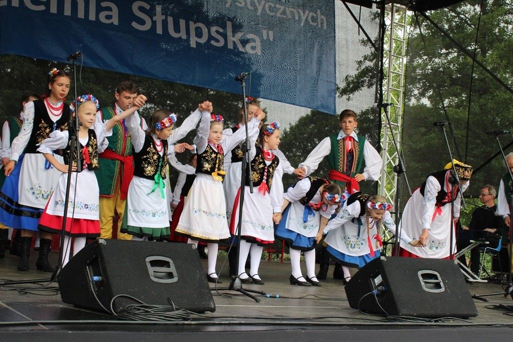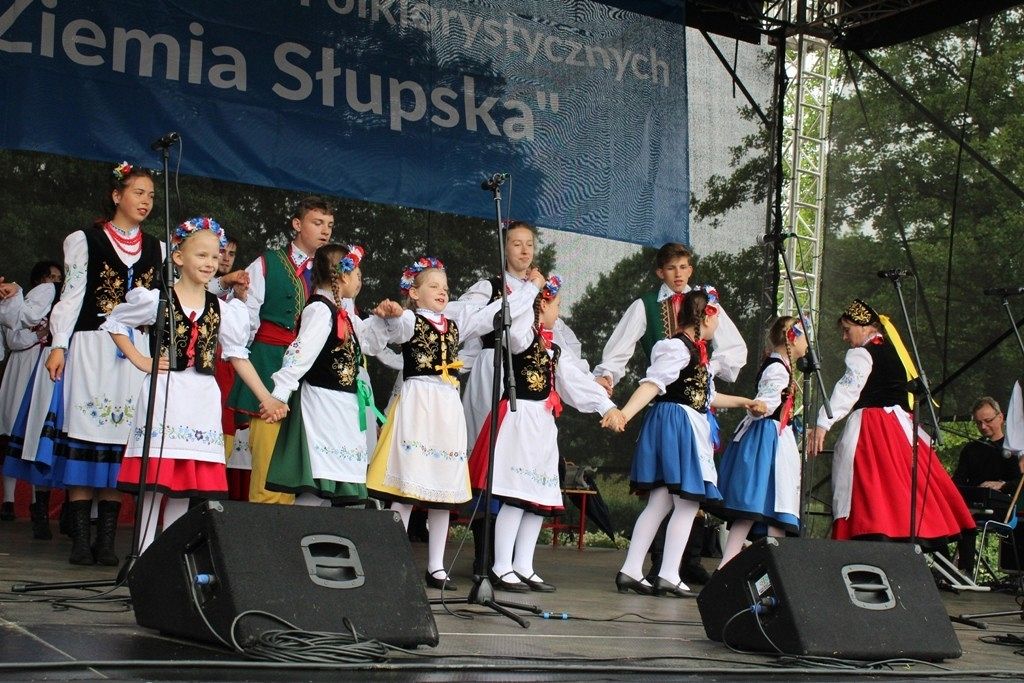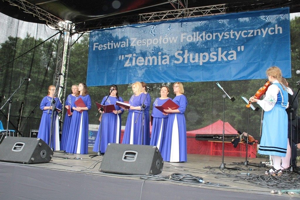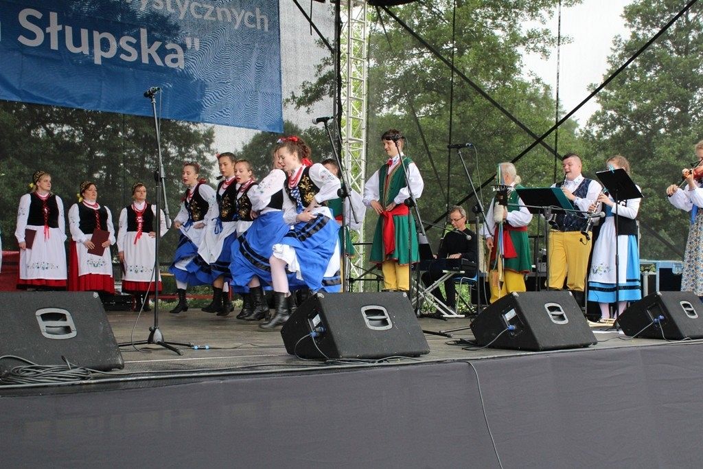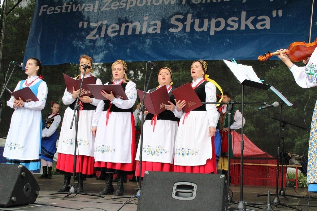 Podczas III Festiwalu Zespołów Folklorystycznych „Ziemia Słupska” 2019 - 16 czerwca odwiedzamy, to miasto i uczestniczymy w mszy św. w kościele Mariackim, a następnie przemieszczamy się ulicami Słupska do Parku Kultury, Sportu i Rekreacji. I chociaż lekkie opady deszczu wróżą jednak przebłyski Słońca, to kolorowy korowód składa się z przedstawicieli Zespołów, które zachwycają mieszkańców barwnymi kreacjami. Udajemy się więc za orkiestrą i władzami miasta ( Urzędu Miejskiego oraz Starostwa), a potem zaznaczamy lęborskie korzenie. Wierzymy, że kultura kaszubska – to połączenie muzyków, tancerzy i instrumentalistów – z całego regionu. Ilość gości i ich popisy na scenie wywołują brawa, a także szacunek dla odmienności kulturowej. Szeroki wachlarz repertuaru scenicznego przyciąga, bowiem fanów Rocka, Kaszub, Mazowsza, Poloneza, miłośników: