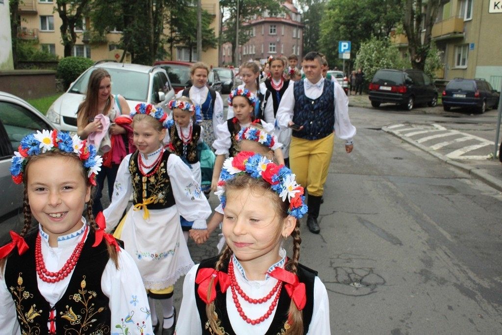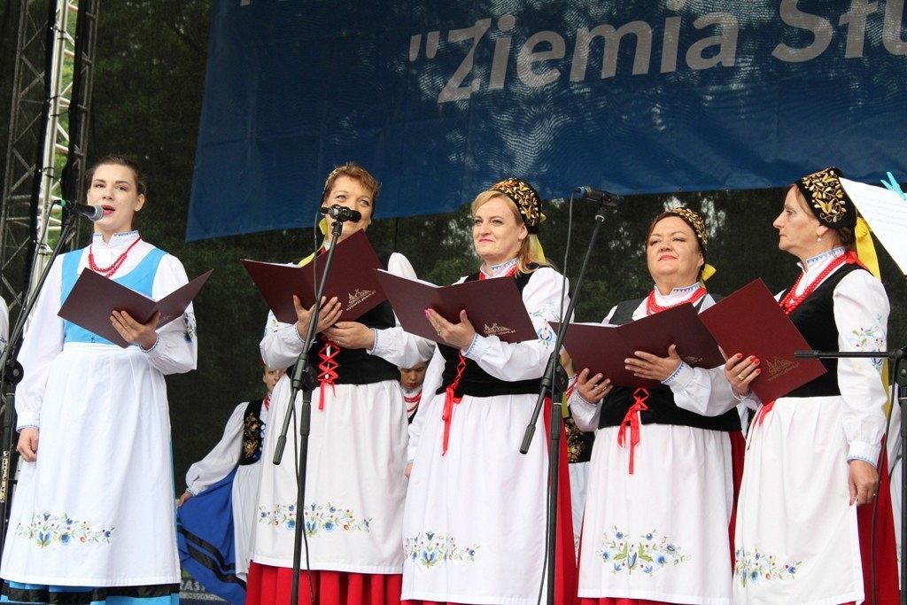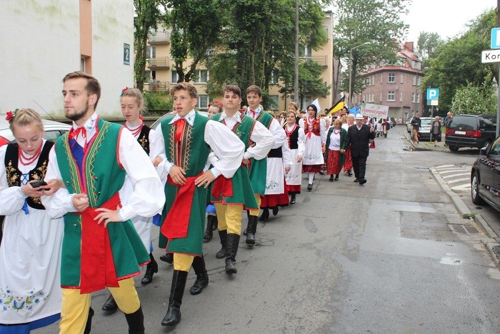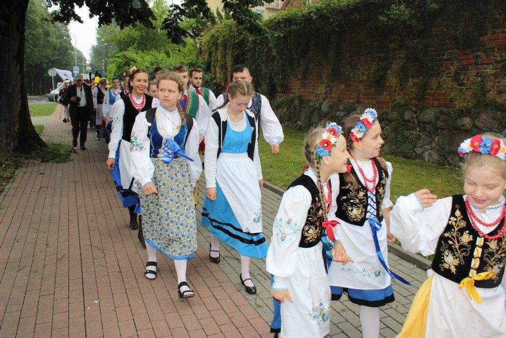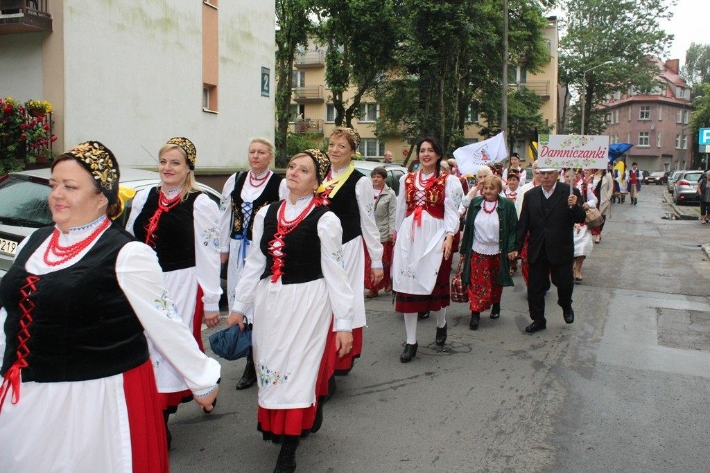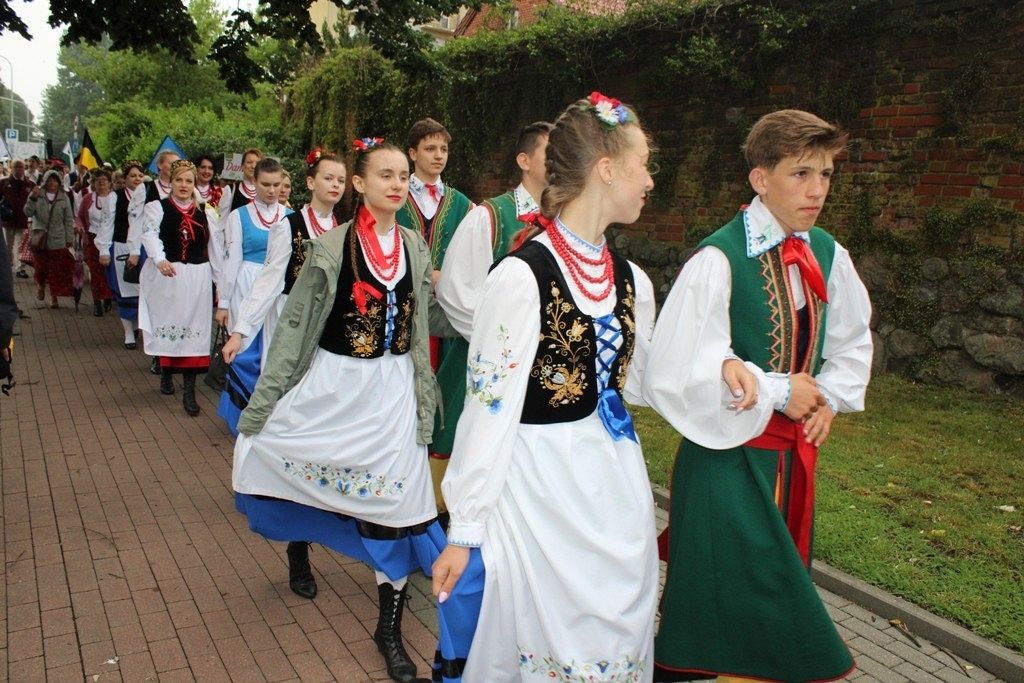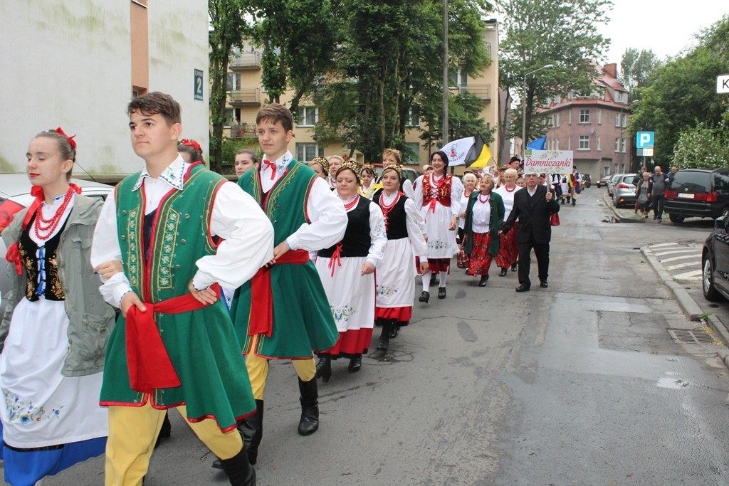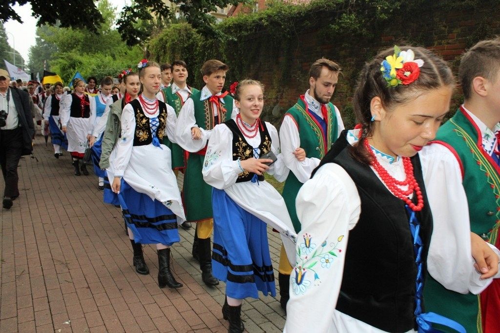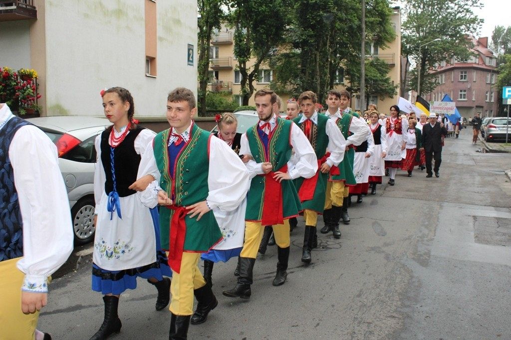 Podczas III Festiwalu Zespołów Folklorystycznych „Ziemia Słupska” 2019 - 16 czerwca odwiedzamy, to miasto i uczestniczymy w mszy św. w kościele Mariackim, a następnie przemieszczamy się ulicami Słupska do Parku Kultury, Sportu i Rekreacji. I chociaż lekkie opady deszczu wróżą jednak przebłyski Słońca, to kolorowy korowód składa się z przedstawicieli Zespołów, które zachwycają mieszkańców barwnymi kreacjami. Udajemy się więc za orkiestrą i władzami miasta ( Urzędu Miejskiego oraz Starostwa), a potem zaznaczamy lęborskie korzenie. Wierzymy, że kultura kaszubska – to połączenie muzyków, tancerzy i instrumentalistów – z całego regionu. Ilość gości i ich popisy na scenie wywołują brawa, a także szacunek dla odmienności kulturowej. Szeroki wachlarz repertuaru scenicznego przyciąga, bowiem fanów Rocka, Kaszub, Mazowsza, Poloneza, miłośników: