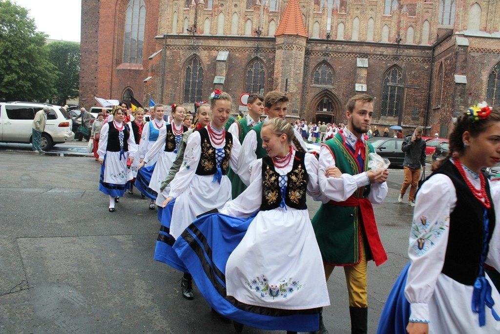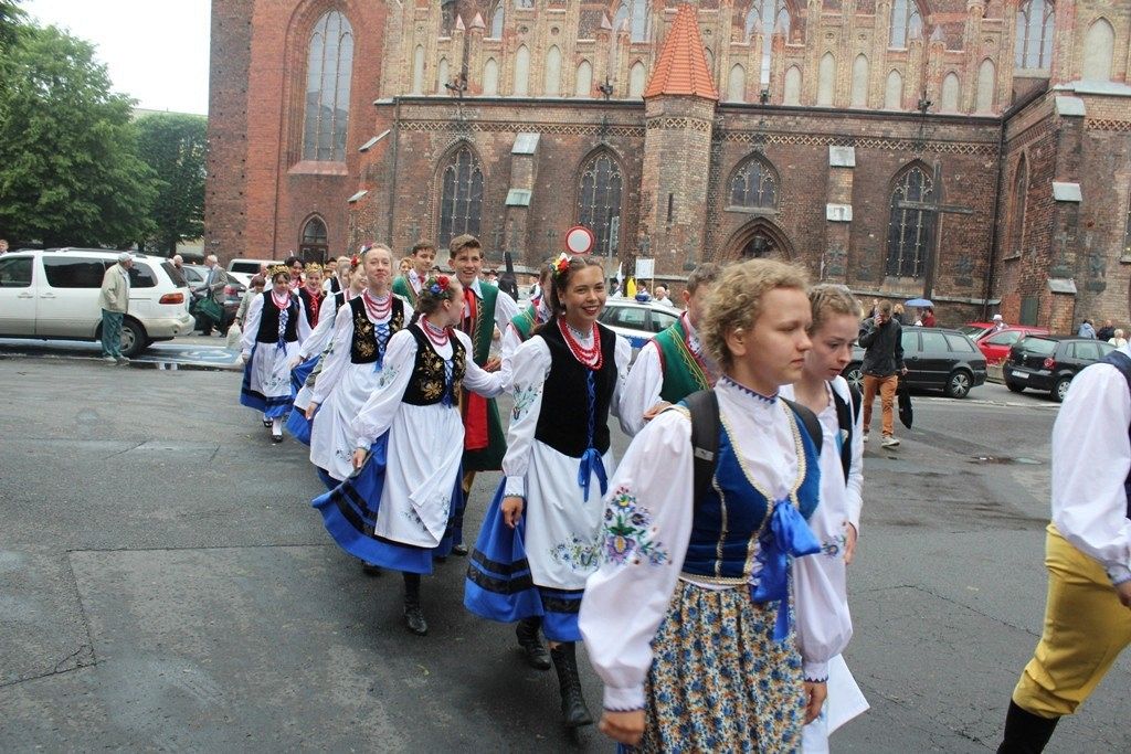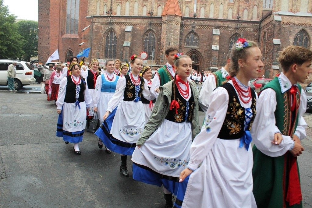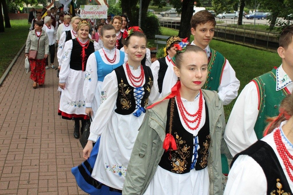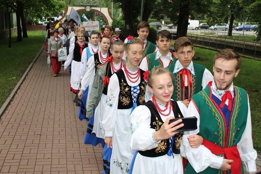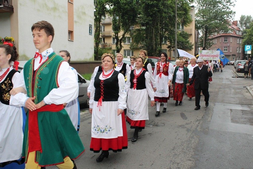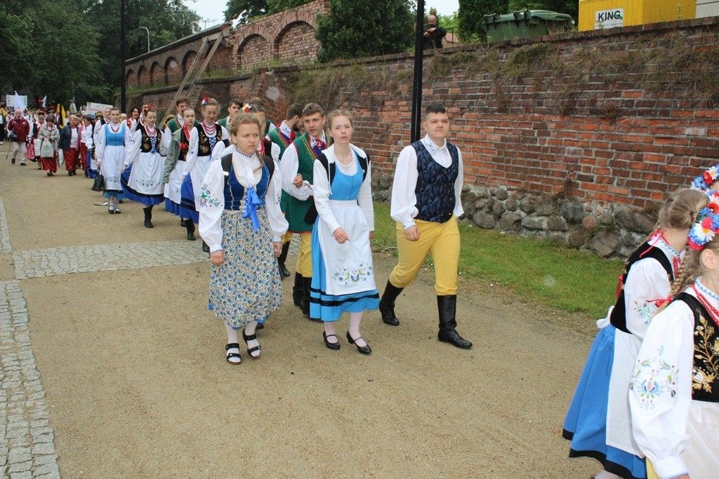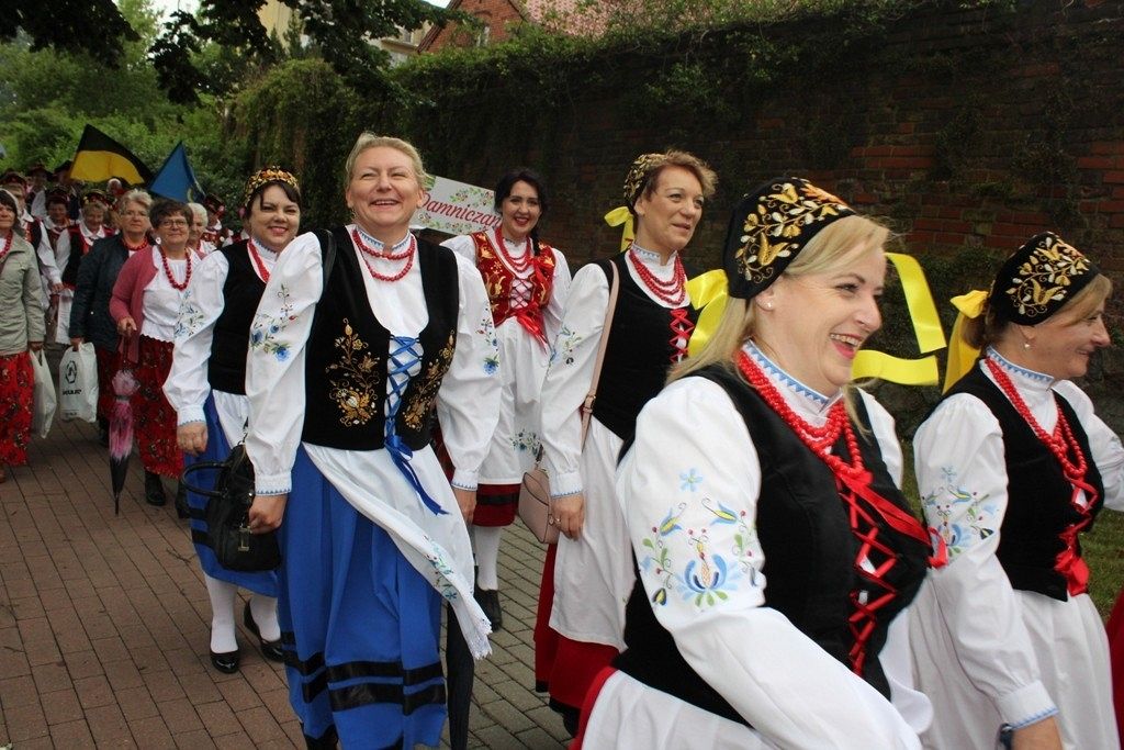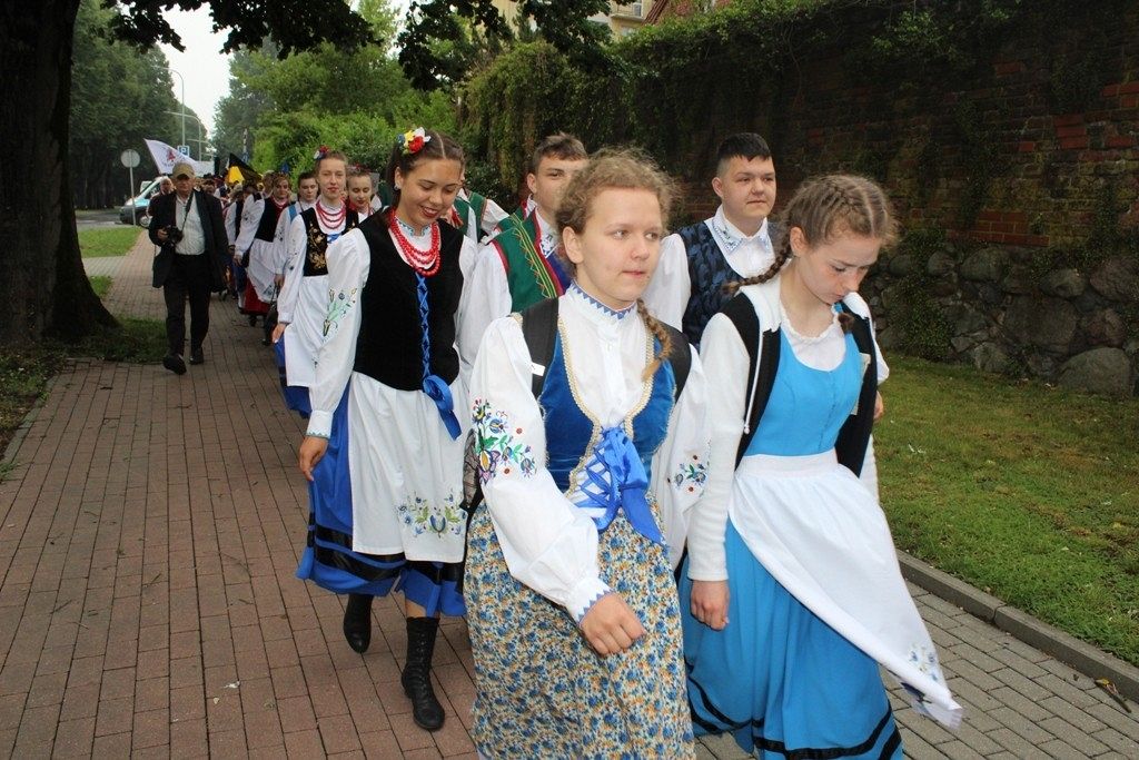 Podczas III Festiwalu Zespołów Folklorystycznych „Ziemia Słupska” 2019 - 16 czerwca odwiedzamy, to miasto i uczestniczymy w mszy św. w kościele Mariackim, a następnie przemieszczamy się ulicami Słupska do Parku Kultury, Sportu i Rekreacji. I chociaż lekkie opady deszczu wróżą jednak przebłyski Słońca, to kolorowy korowód składa się z przedstawicieli Zespołów, które zachwycają mieszkańców barwnymi kreacjami. Udajemy się więc za orkiestrą i władzami miasta ( Urzędu Miejskiego oraz Starostwa), a potem zaznaczamy lęborskie korzenie. Wierzymy, że kultura kaszubska – to połączenie muzyków, tancerzy i instrumentalistów – z całego regionu. Ilość gości i ich popisy na scenie wywołują brawa, a także szacunek dla odmienności kulturowej. Szeroki wachlarz repertuaru scenicznego przyciąga, bowiem fanów Rocka, Kaszub, Mazowsza, Poloneza, miłośników: