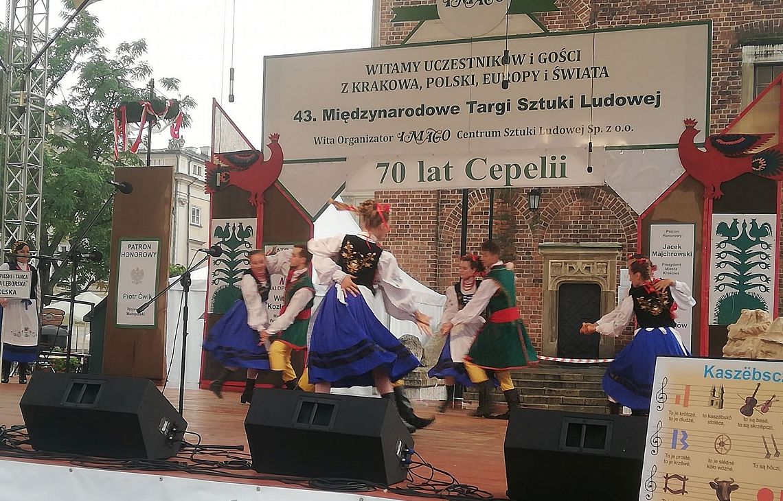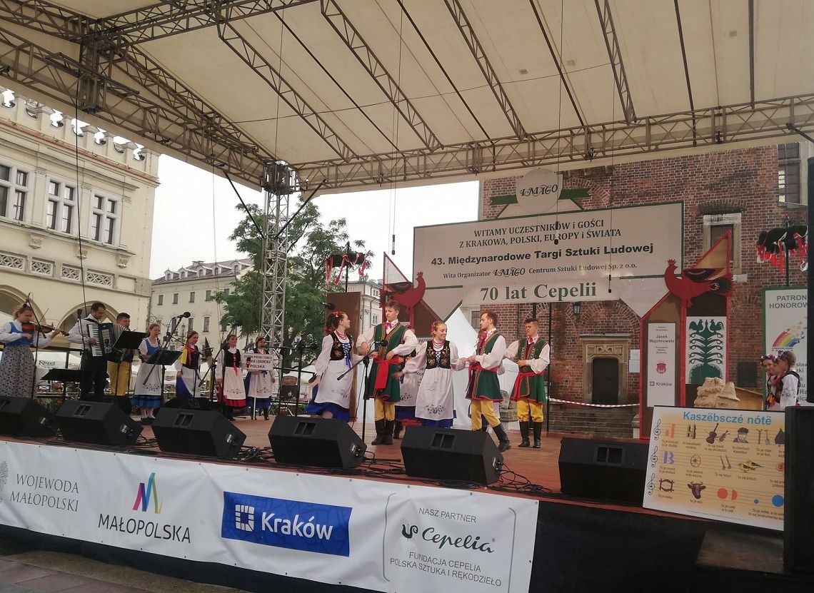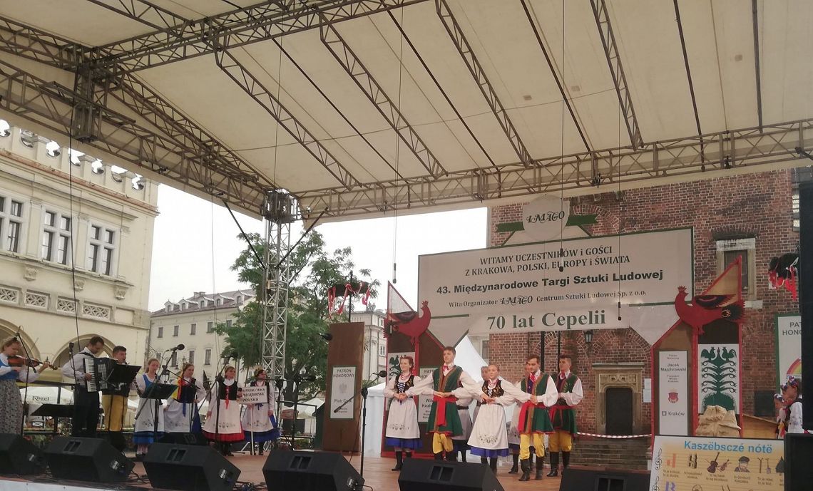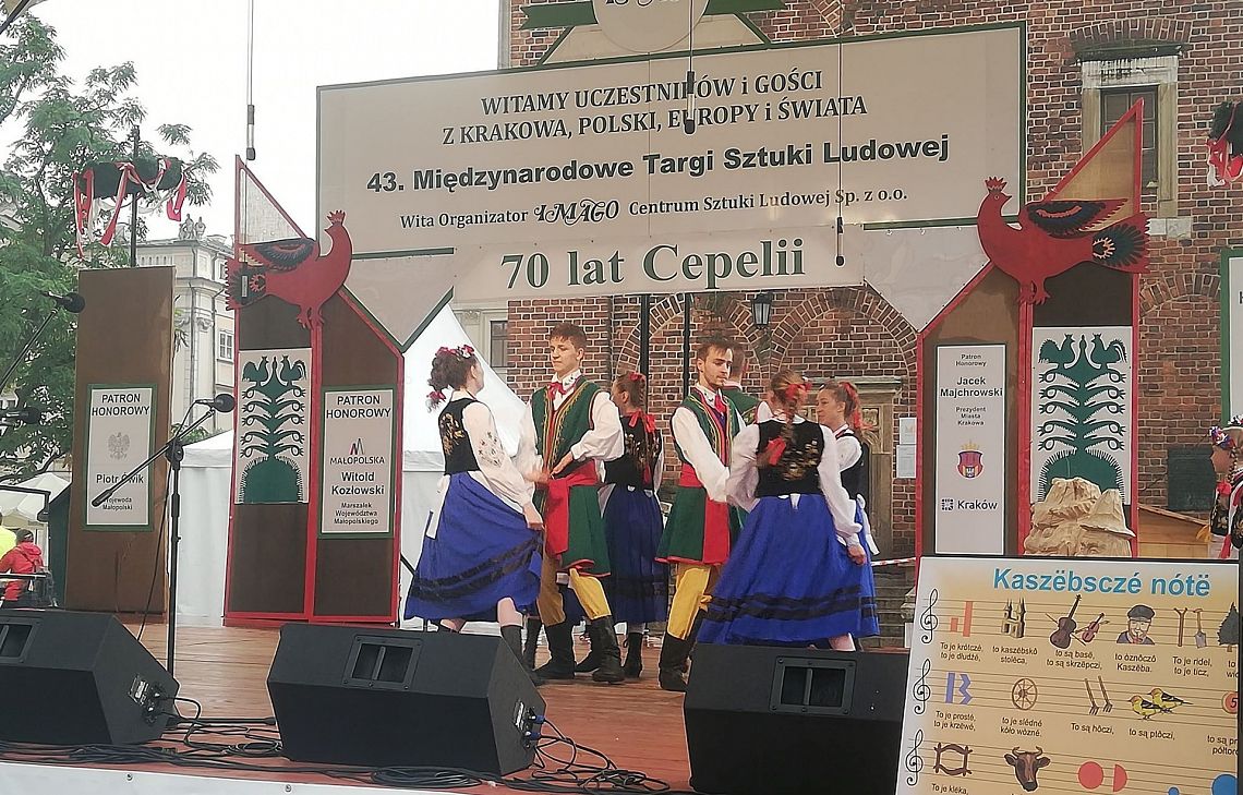 Kraków, jak zwykle, przyjął nas bardzo gorąco. Pomimo padającego deszczu, udało nam się zgromadzić publiczność, która doceniła nasz występ. Zaprezentowaliśmy instrumenty na których gramy: burczybas, diabelskie skrzypce, ryńczyk oraz bazunę. Tańce rozpoczęliśmy tradycyjnym Kosederem, była też Marëszka, Krzyżnik, Wôłtôk, Kùflôrz a na koniec popisowy Dzëk, który wywołał niemałe poruszenie wśród publiczności na krakowskim Rynku. Najmłodsze dziewczynki zatańczyły Szewca i nauczyły publiczność odczytywać kaszubskie nuty. Uczestnicy koncertu chętnie robili sobie z nami zdjęcia, dopytywali o elementy naszych strojów oraz o instrumenty, które ze sobą mieliśmy. Było wspaniale. Będziemy miło wspominać te chwile. A Państwu proponujemy obejrzenie zdjęć z naszego występu, które zamieszczamy w fotogalerii.