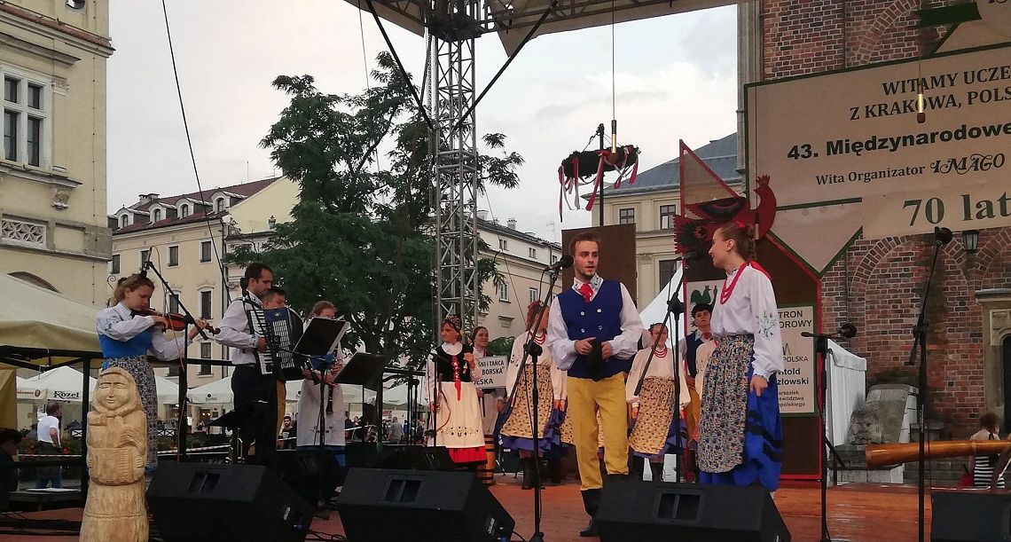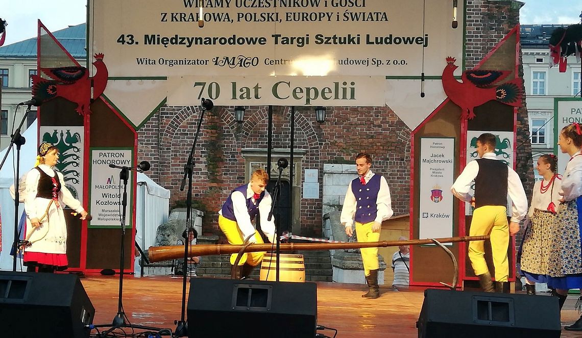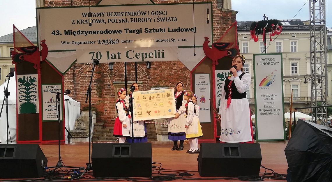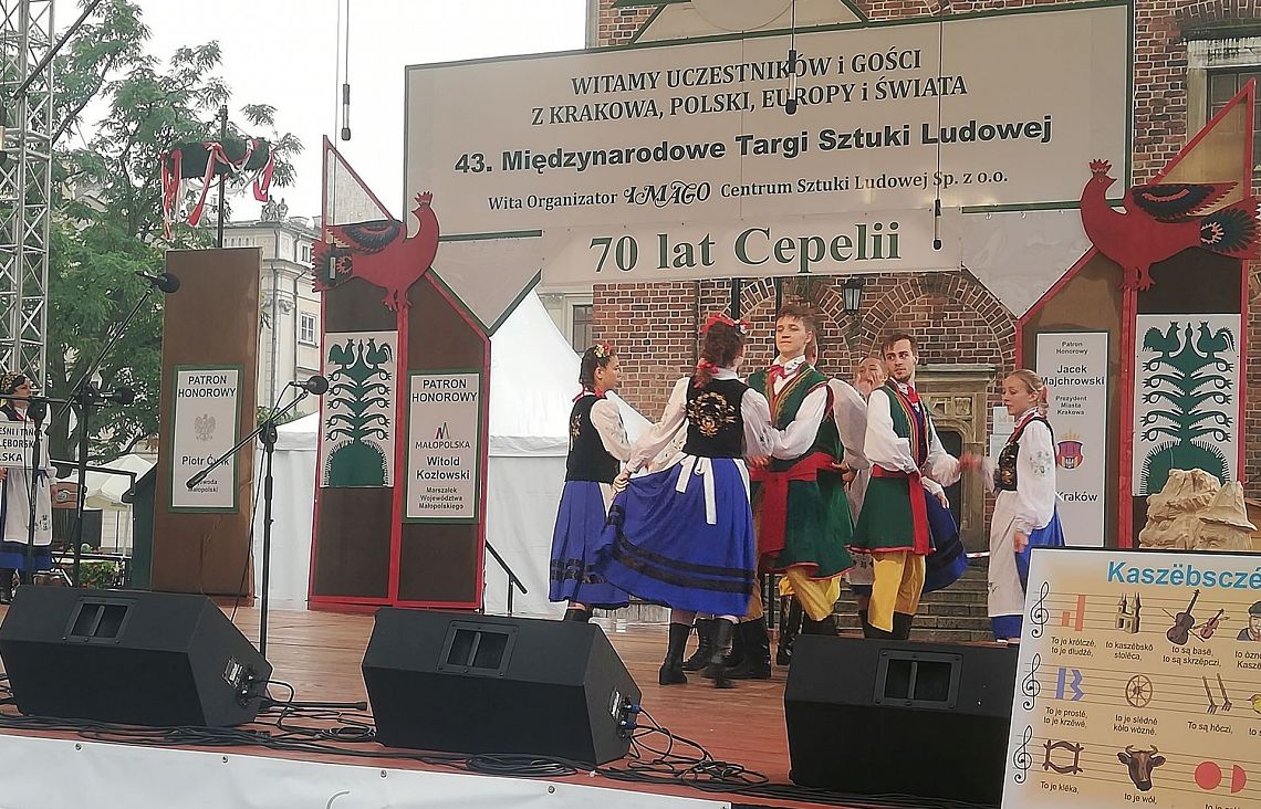 Kraków, jak zwykle, przyjął nas bardzo gorąco. Pomimo padającego deszczu, udało nam się zgromadzić publiczność, która doceniła nasz występ. Zaprezentowaliśmy instrumenty na których gramy: burczybas, diabelskie skrzypce, ryńczyk oraz bazunę. Tańce rozpoczęliśmy tradycyjnym Kosederem, była też Marëszka, Krzyżnik, Wôłtôk, Kùflôrz a na koniec popisowy Dzëk, który wywołał niemałe poruszenie wśród publiczności na krakowskim Rynku. Najmłodsze dziewczynki zatańczyły Szewca i nauczyły publiczność odczytywać kaszubskie nuty. Uczestnicy koncertu chętnie robili sobie z nami zdjęcia, dopytywali o elementy naszych strojów oraz o instrumenty, które ze sobą mieliśmy. Było wspaniale. Będziemy miło wspominać te chwile. A Państwu proponujemy obejrzenie zdjęć z naszego występu, które zamieszczamy w fotogalerii.